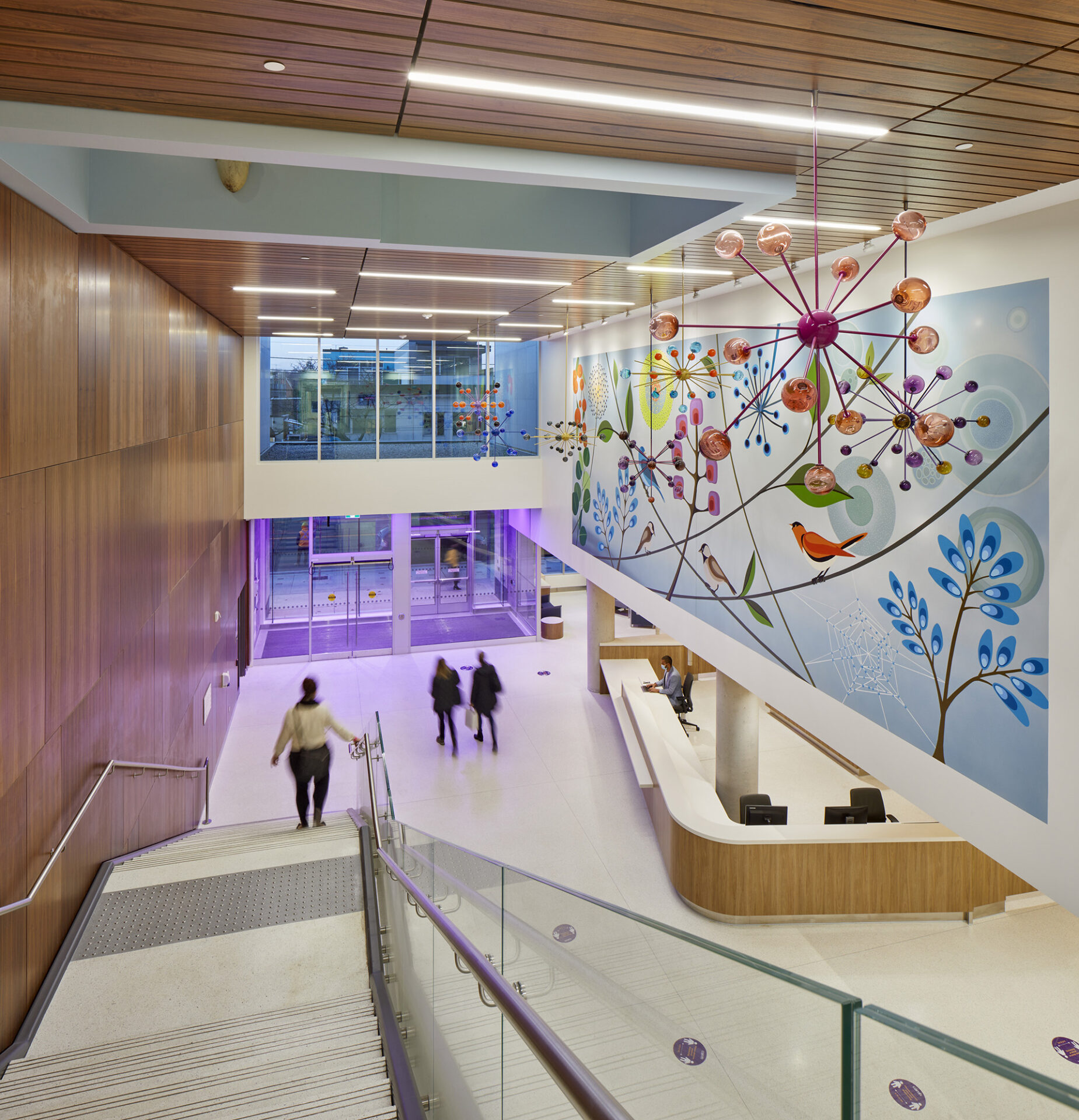 CAMH is Canada’s largest mental health hospital, and sees over 30,000 unique clients a year. Starting in 2005, CAMH embarked on a bold, multi-phase redevelopment project focused on building a new kind of hospital for the 21st century, with improved patient experience and outcomes, integration with community with park space, extended streets, art installations and pathways, thereby creating multiple access points for the public to engage with CAMH and in doing so, help challenge stigma and breakdown barriers for people living with mental illness.