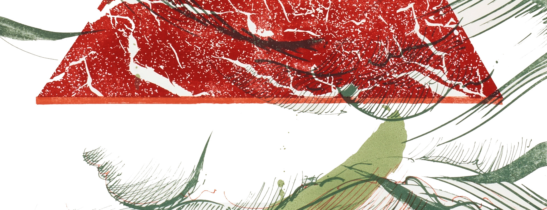 Through the layering of shape, texture, colour, and transparency, each print captures a fleeting moment where order and flow overlap. The clean geometry of the forms suggests stability, while the surrounding marks and gestures evoke movement and lightness. This interplay of suspension, lightness, and movement threads through the series, blurring the boundaries between material and immaterial.