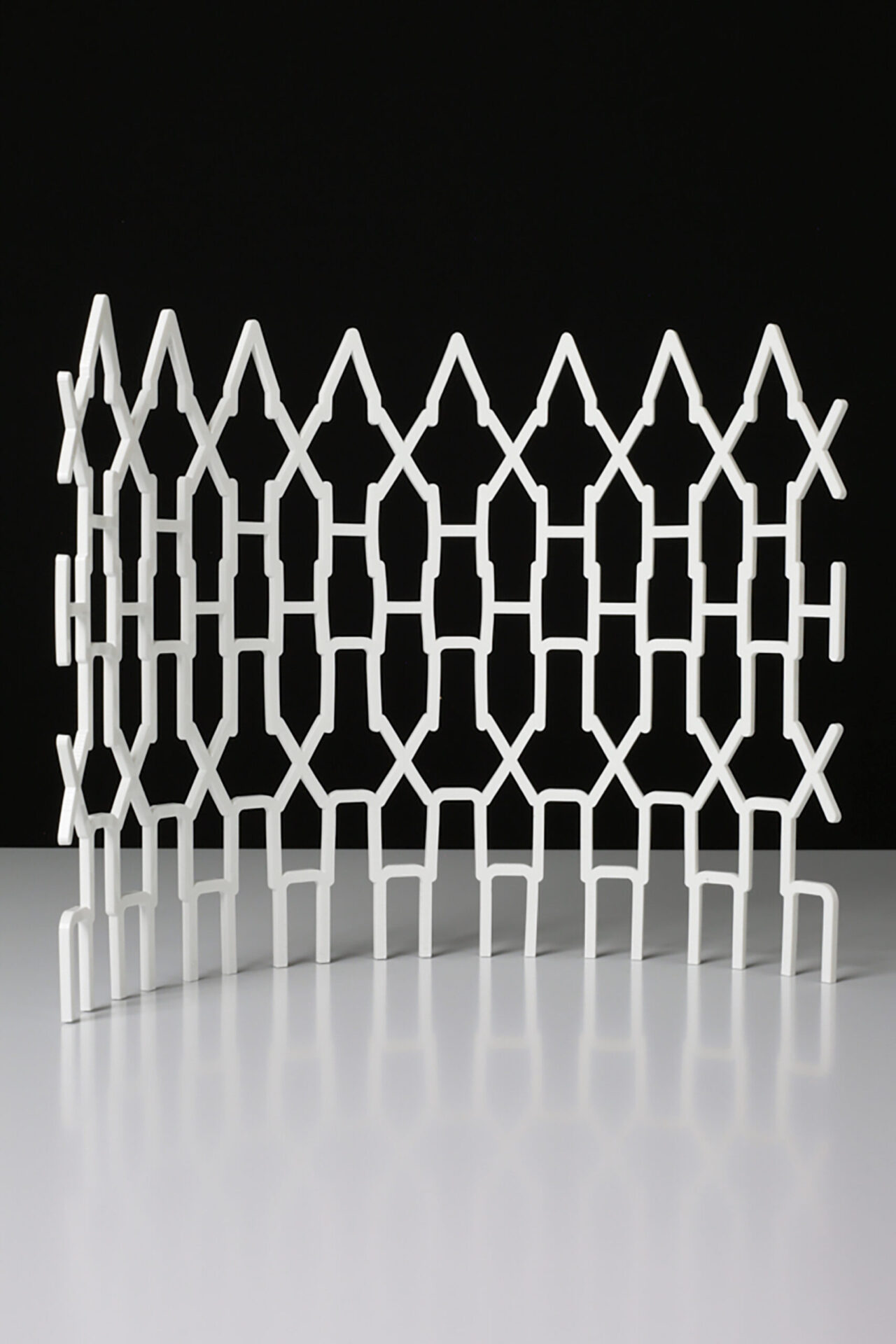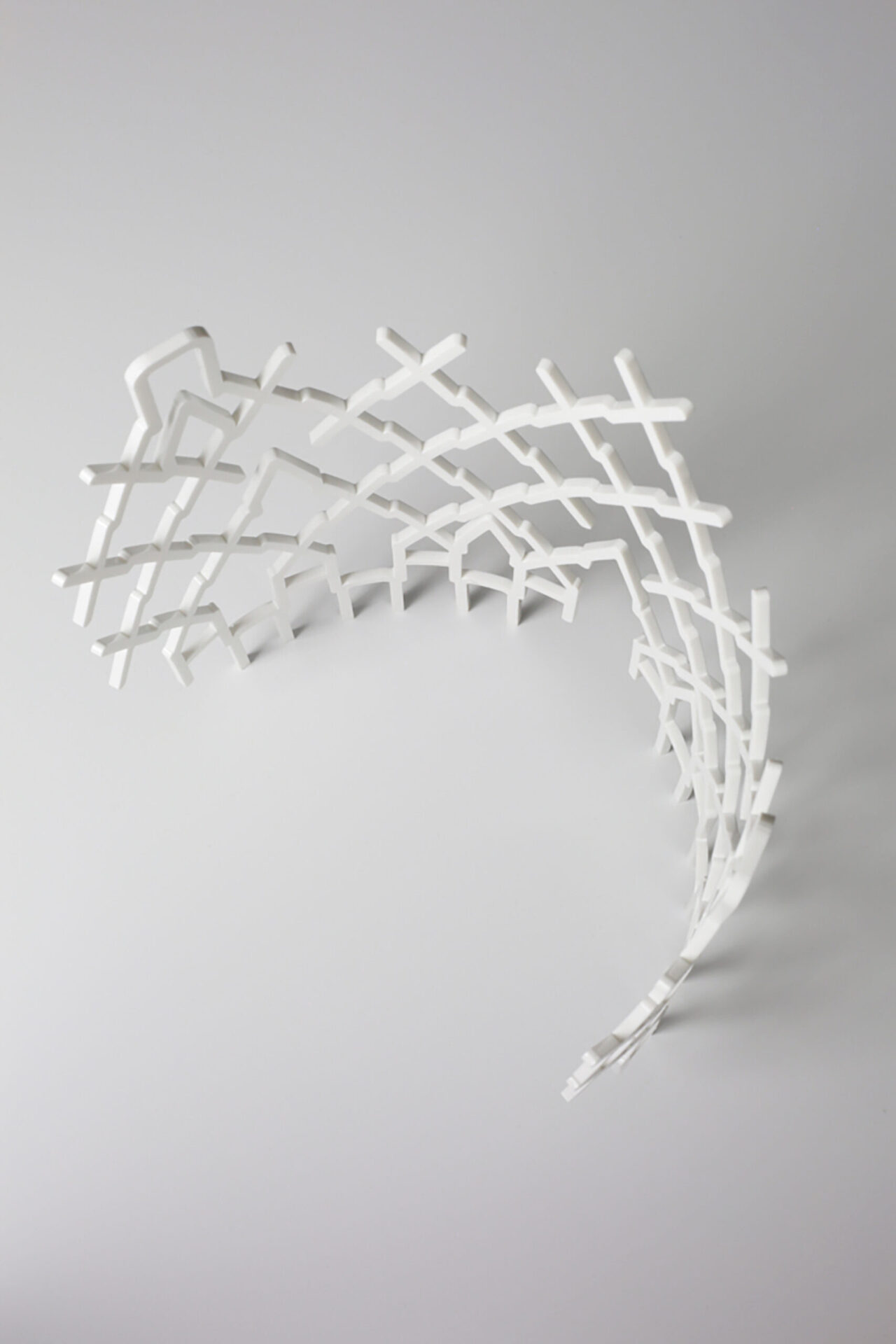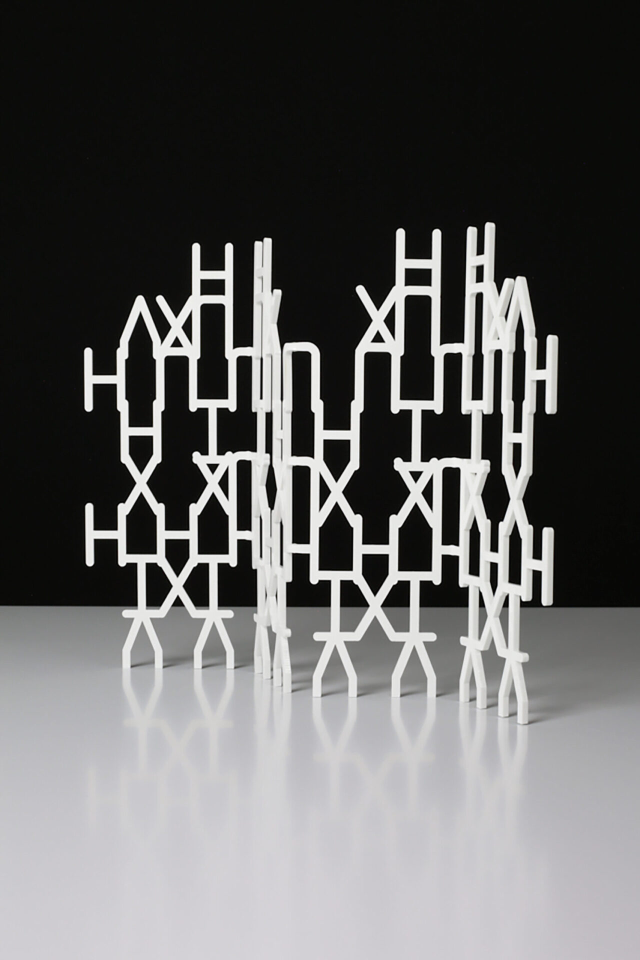 Examining letterforms as building blocks of communication, ‘Language Structures’ underlines the artist’s critical perspectives on mass media in the built environment, particularly in public social spaces in an urban context. Presented by Worth Gallery, these new sculptures have been developed using algorithm aided design techniques advancing Aloisi’s work involving letterforms assembled as architectural units. An interdisciplinary experiment testing the confluence of typography and architecture; revealing the structural potential of a communicative exoskeleton; examining thresholds of two and three dimensions.