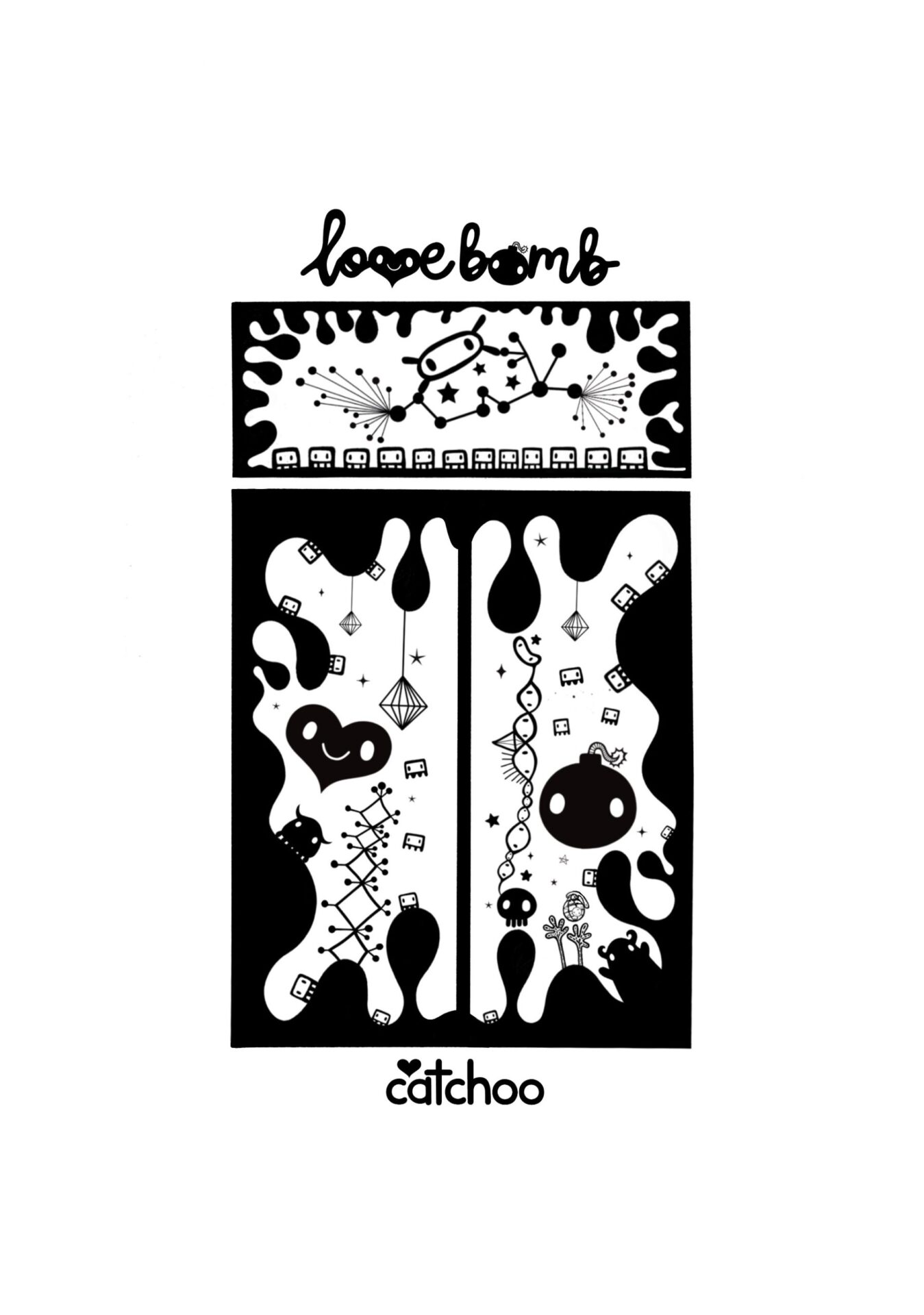 Love can be as simple as black and white like the graphics and paintings created in this collection. But it often becomes complicated by our mature minds and hard experiences. love bomb is also a movement that encourages a repositioning of how we express love and use our time.