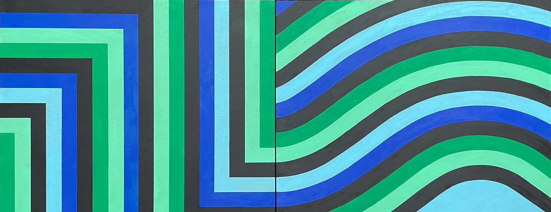Klara VY’s work is guided by her background in, and passion for, graphic design and architecture. It blends geometric patterns and bold colours. Through the meticulous employment of these two simple elements, she is able to manifest work that satisfies our itch for finding visual harmony in our surroundings. Klara strives to create work that is both playful and soothing, while finding clever ways to shift certain elements to avoid predictability. Symmetry, used strategically, evokes a sense of order and tranquility, inviting viewers into a space of comfort and well-being. Yet, the subtle ruptures within the patterns and the construction of the work add a layer of intrigue, gently nudging the audience to question, explore, and engage in a dialogue with the art.